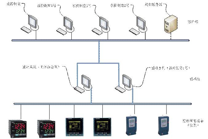爐壁溫度和鎧裝偶溫度采用無紙記錄儀,共有30臺(tái),其中英華達(dá)表26臺(tái)、大華表2臺(tái)(無通訊),川儀表2臺(tái)(無通訊)。冷卻槽溫度控制選用UT351型儀表3臺(tái),淬火機(jī)床選用英國(guó)紅外線測(cè)溫儀3臺(tái),雷泰測(cè)溫儀5臺(tái),愛康達(dá)測(cè)溫儀2臺(tái)。