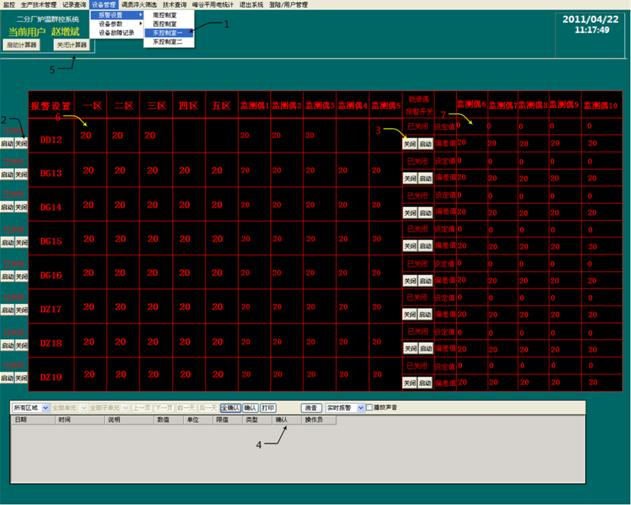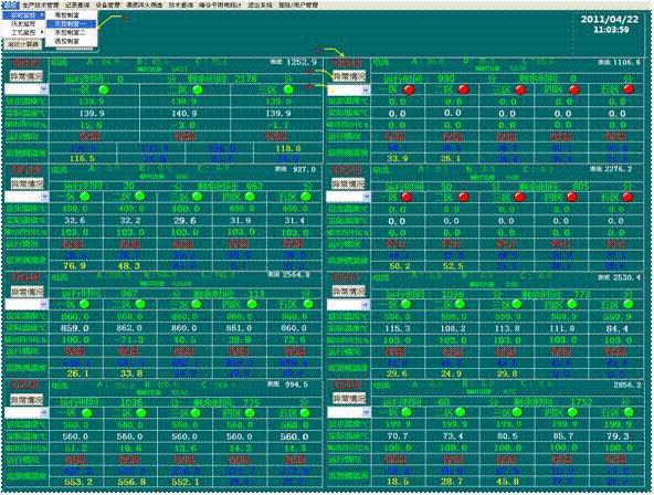用來監(jiān)視某臺(tái)設(shè)備的工藝運(yùn)行的詳細(xì)情況,包括設(shè)定工藝,實(shí)際運(yùn)行情況運(yùn)行狀態(tài),運(yùn)行時(shí)間,并對(duì)設(shè)備實(shí)現(xiàn)分區(qū)控制。