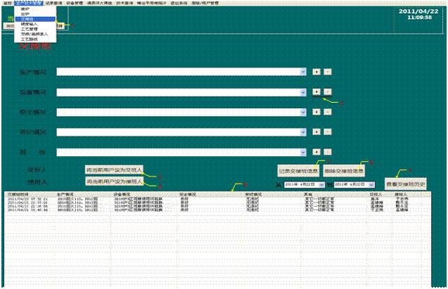 進(jìn)行交接班的操作。并可以實(shí)現(xiàn)歷史交接班記錄的查詢。