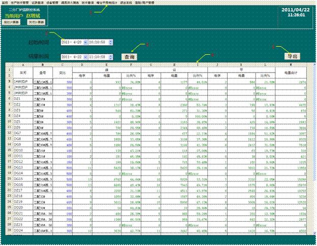 該界面用于統(tǒng)計(jì)個(gè)設(shè)備峰谷平的用電情況,并可以導(dǎo)出成excel的形式。